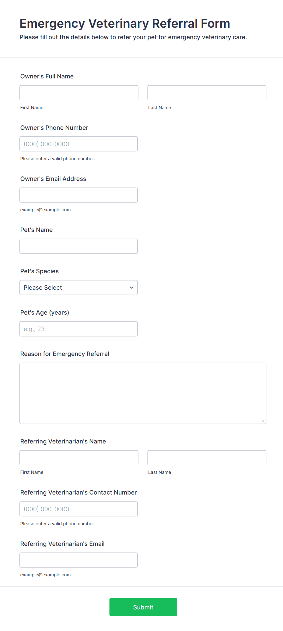 Veterinary Service Forms