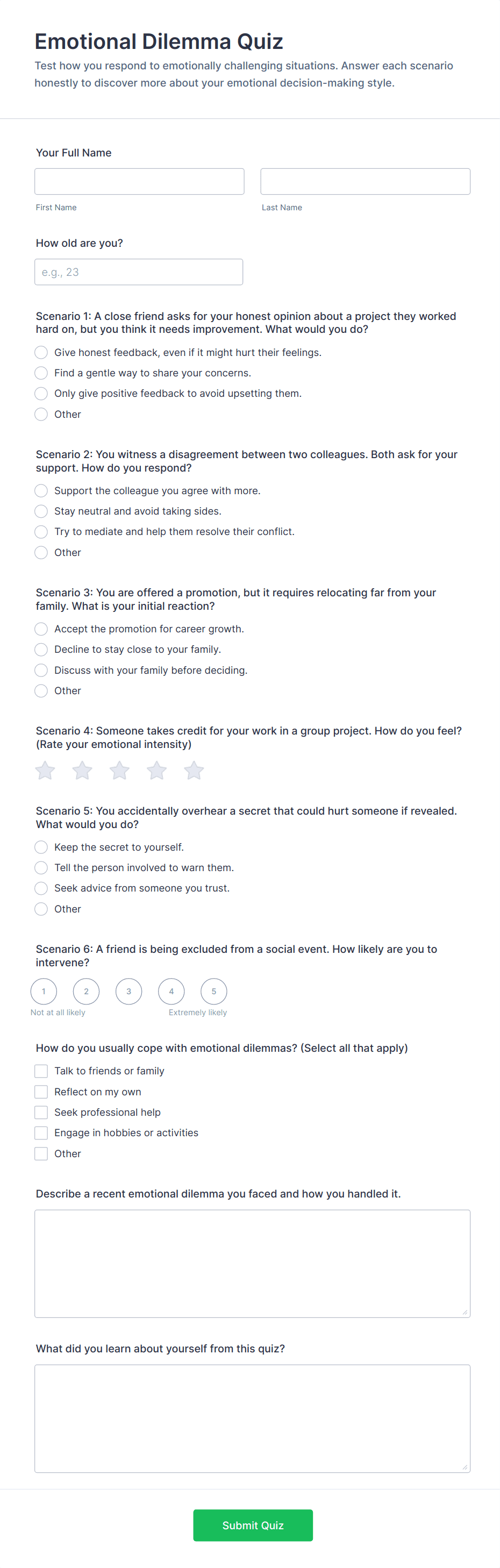 • Personality or Marketing Quizzes: Often use branching logic and personalized results based on user responses.