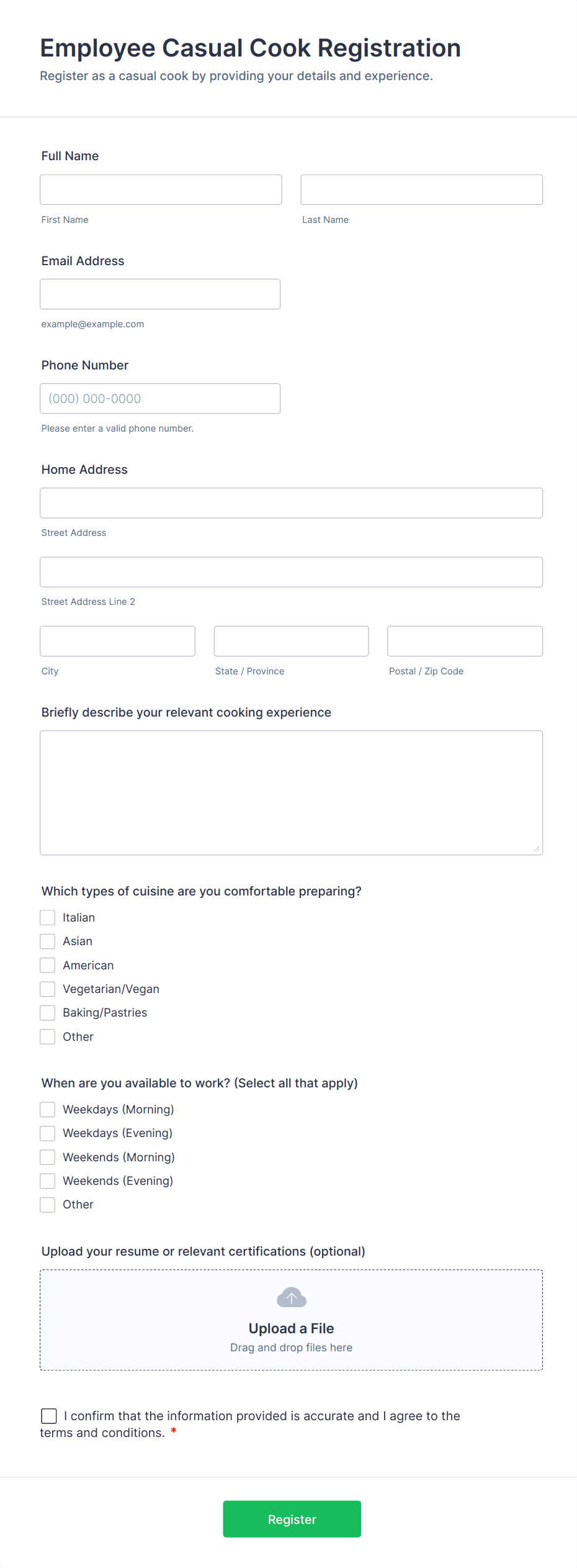 • Event Enrollment Forms: Collect participation preferences, dietary restrictions, and emergency contacts.