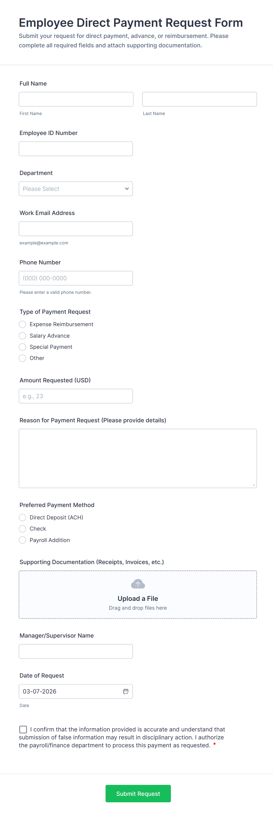 All hiring, insurance, disciplinary, incident report, time-off, and survey processes will involve HR forms. Other common use cases for HR forms are for payroll and compensation, promotions, and conflict resolution.