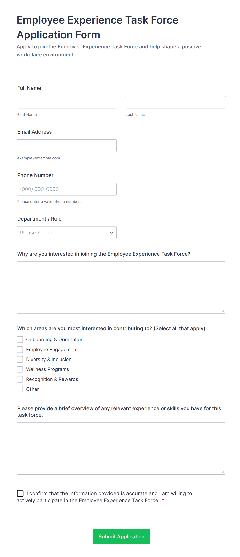 • For onboarding or exit surveys, add fields about the hiring process, training, or reasons for leaving.
