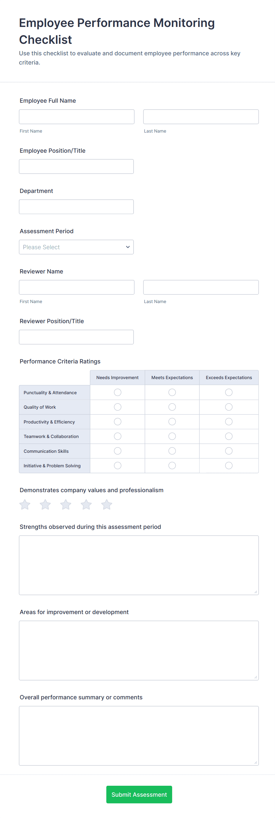 Assessment Form