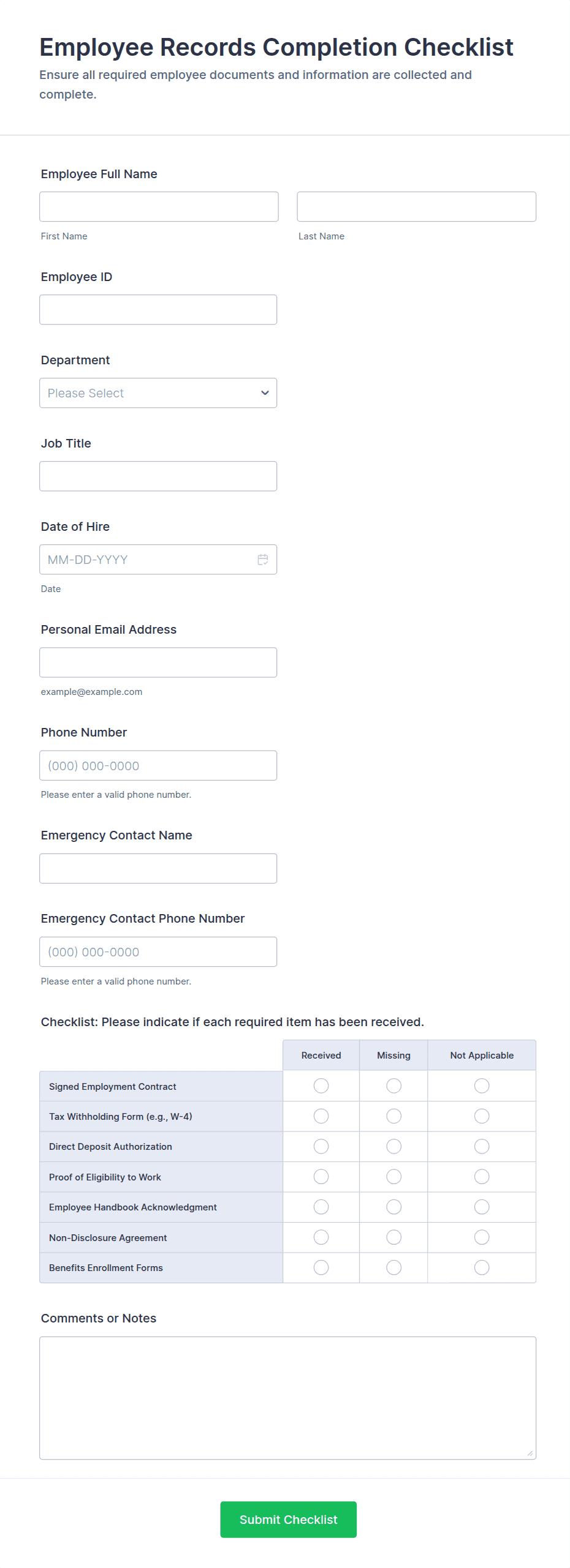 Checklist forms usually contain a list of tasks or items, checkboxes for completion, and may include fields for names, dates, comments, signatures, or supporting documentation.