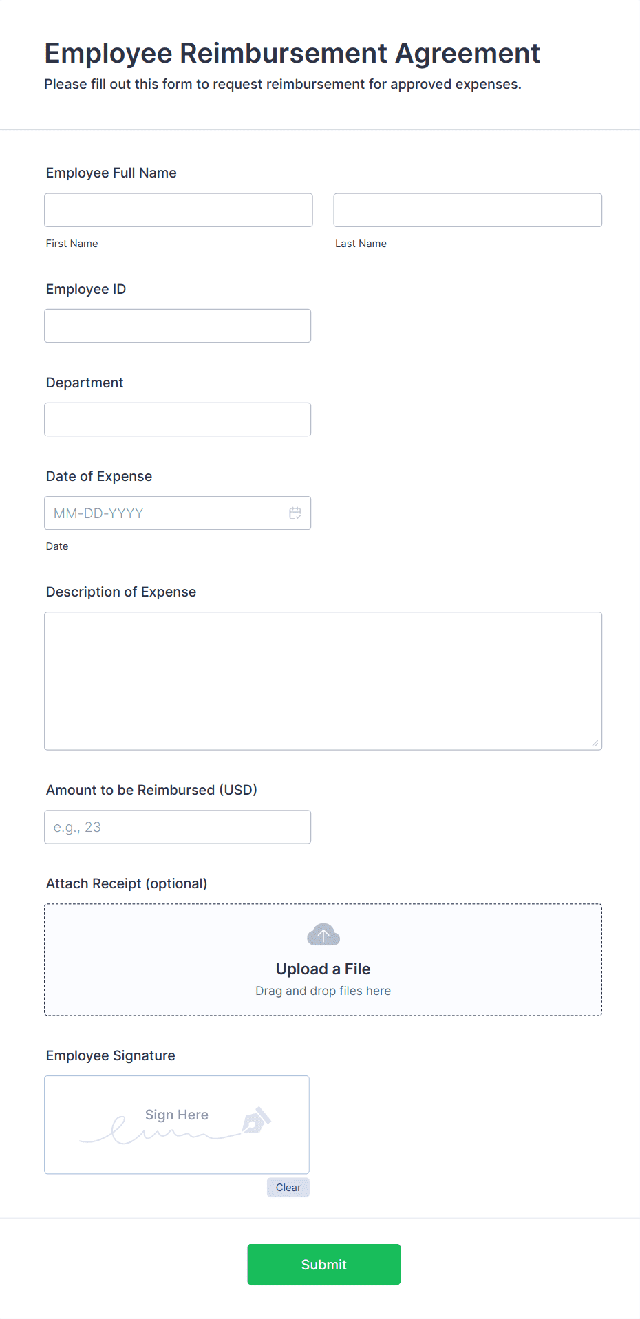 The form templates here are for informational purposes only. Jotform is not providing legal, financial, or other advice, or implying that the forms are legally valid in all or any jurisdictions. Before using any such form, consult an attorney and/or other applicable professionals to make sure that the form meets your needs, legally and otherwise.