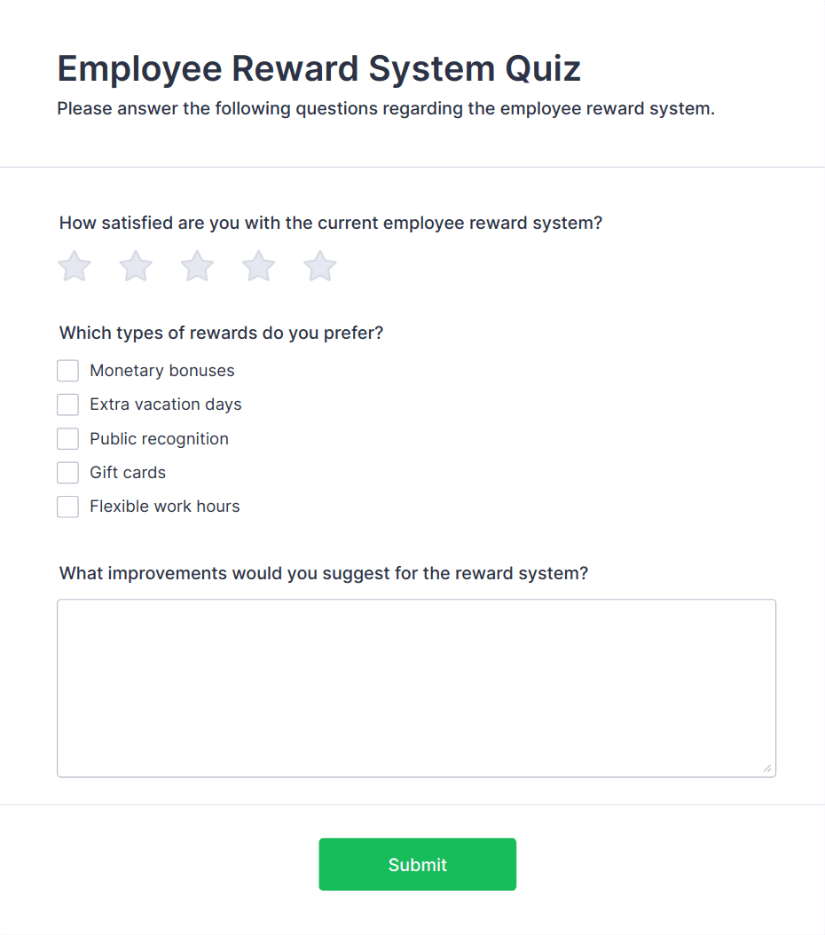 Find out what your employees think of their work environment. Free online survey template. Drag and drop to customize. Connect with 100+ popular apps. No coding.