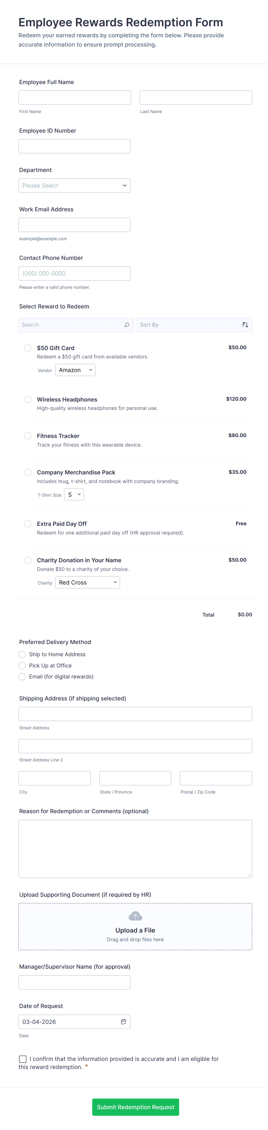 Human resources forms are documents that a company's HR department uses to recruit and manage employees. With Jotform’s online human resources form templates, your HR department can manage employee information, employment verification, employment satisfaction, CV submissions, job applications, and time-off requests. Get started by choosing a template below to edit for free.