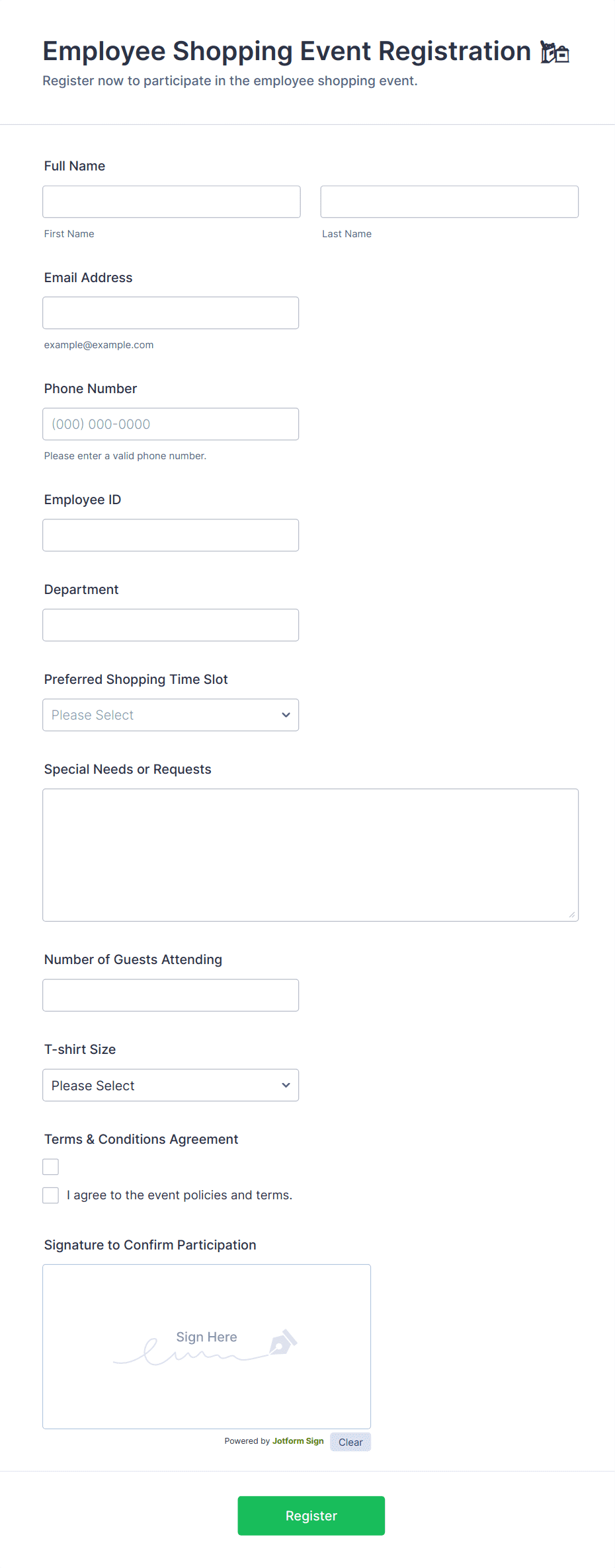 • Include event-specific fields like session selection, meal preferences, or T-shirt sizes.