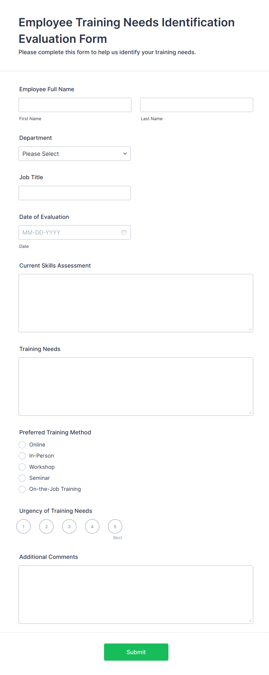 An Employee Training Survey is a form template designed to gather feedback from employees who have undergone training programs within a company.