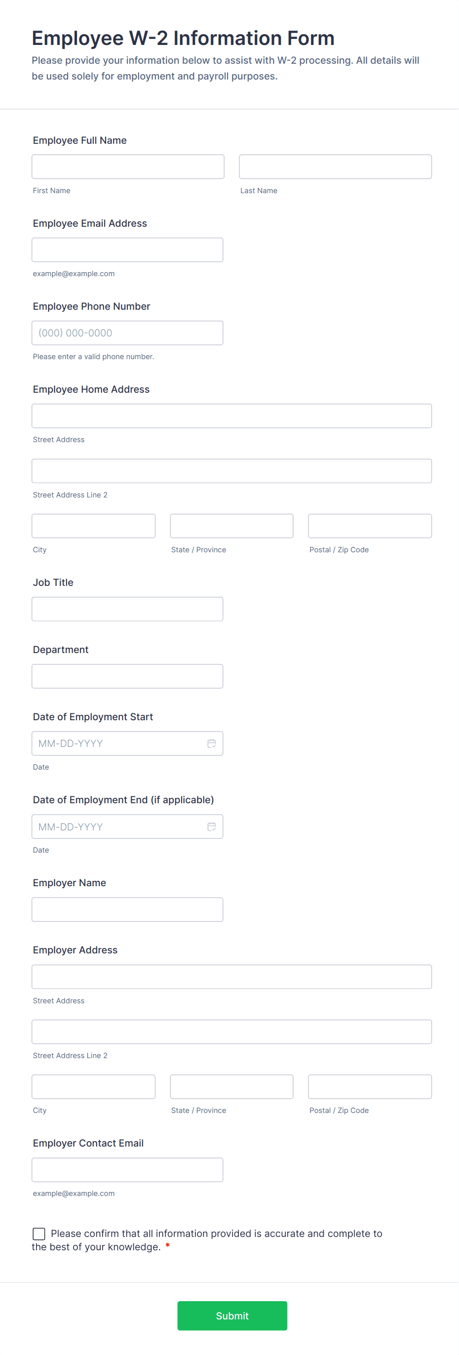 Collect tax information from employees. W-4 form and employee's withholding certificate template. Auto-save submissions as PDFs. Works on any device. No coding.
