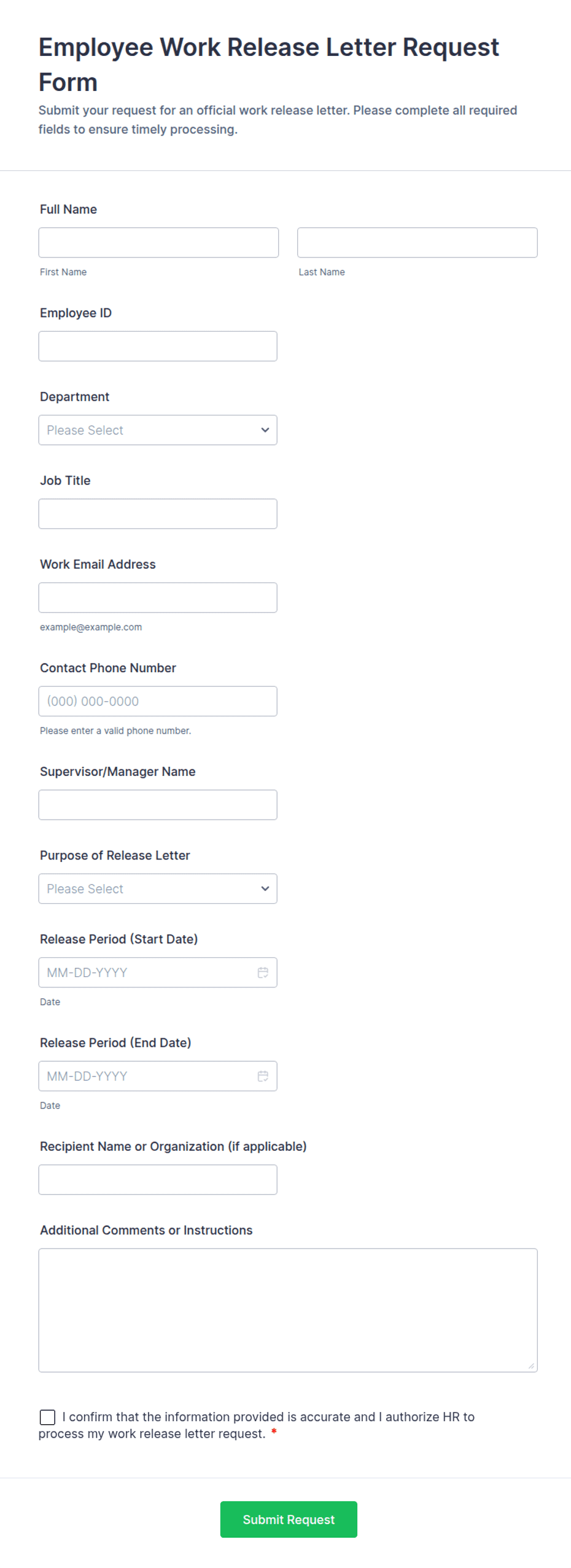 By following these steps, you can create tailored employment release forms that address your organization’s specific needs, streamline HR processes, and help legal compliance.