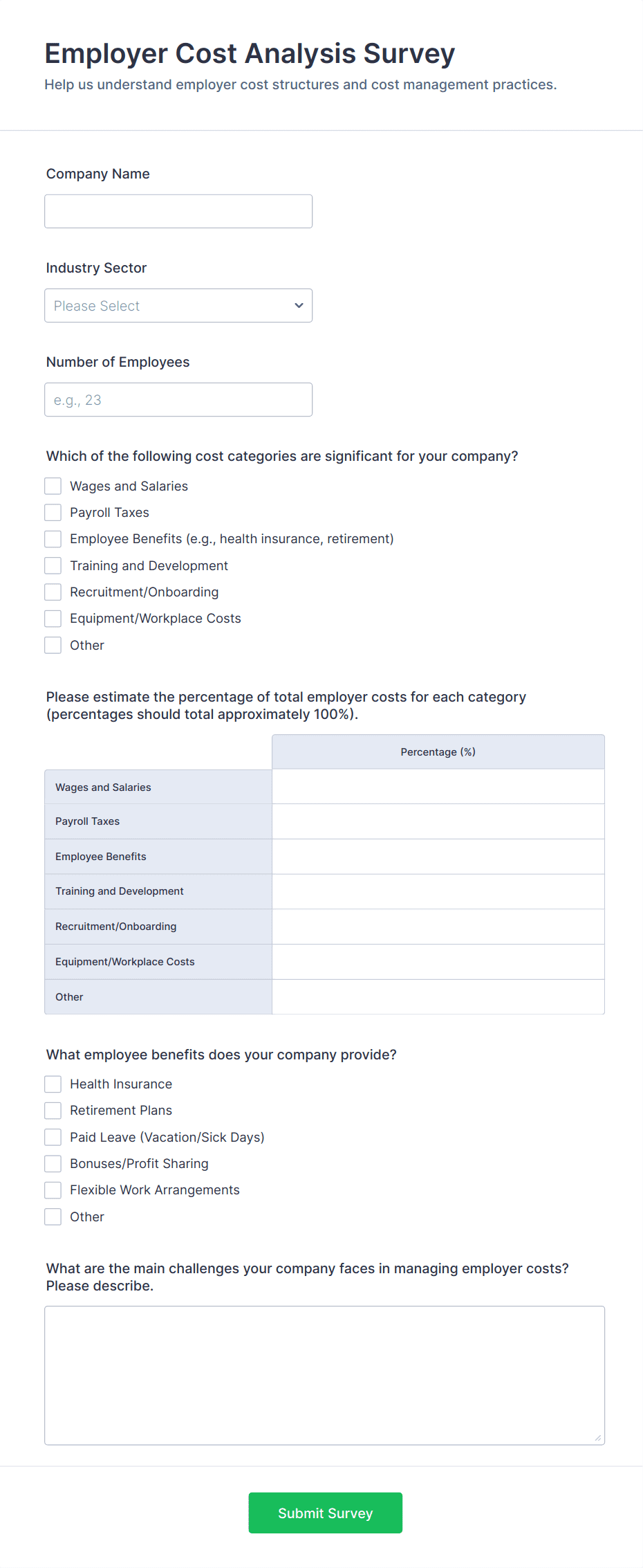 Business surveys are essential tools for organizations seeking to gather actionable insights, measure performance, and drive informed decision-making. These surveys can cover a wide range of topics, including customer satisfaction, employee engagement, market research, product feedback, and internal process evaluations. By systematically collecting feedback from customers, employees, partners, or stakeholders, businesses can identify strengths, uncover areas for improvement, and adapt strategies to meet evolving needs. Whether you’re a small business owner, HR manager, marketing professional, or executive, business surveys help you stay connected to your audience and make data-driven choices that foster growth and efficiency.