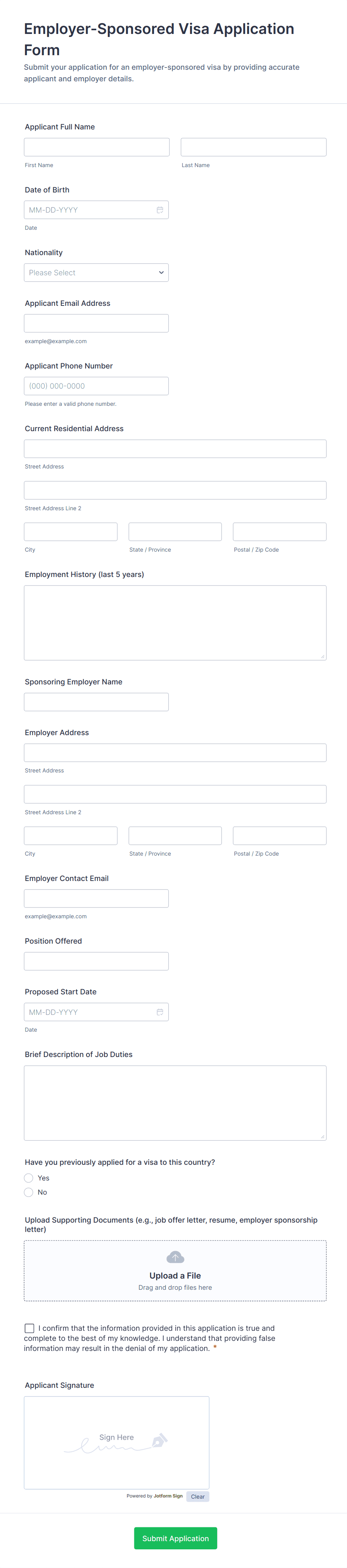 Employment Application Form
