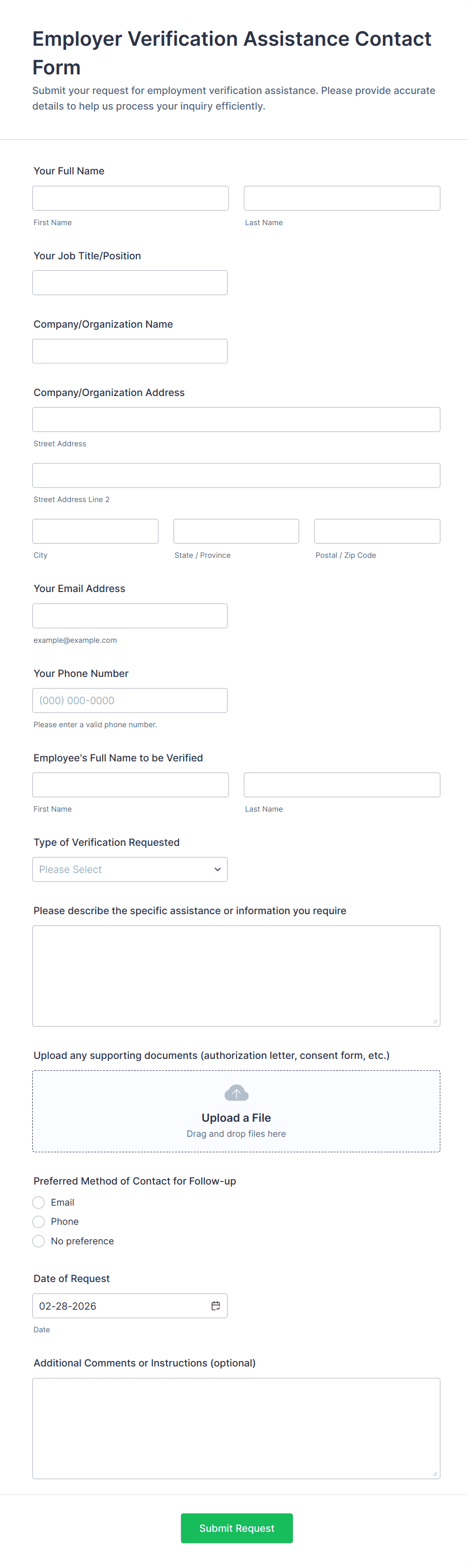 - Use dropdowns or multiple-choice fields to specify the type of verification (e.g., identity, employment, address).
