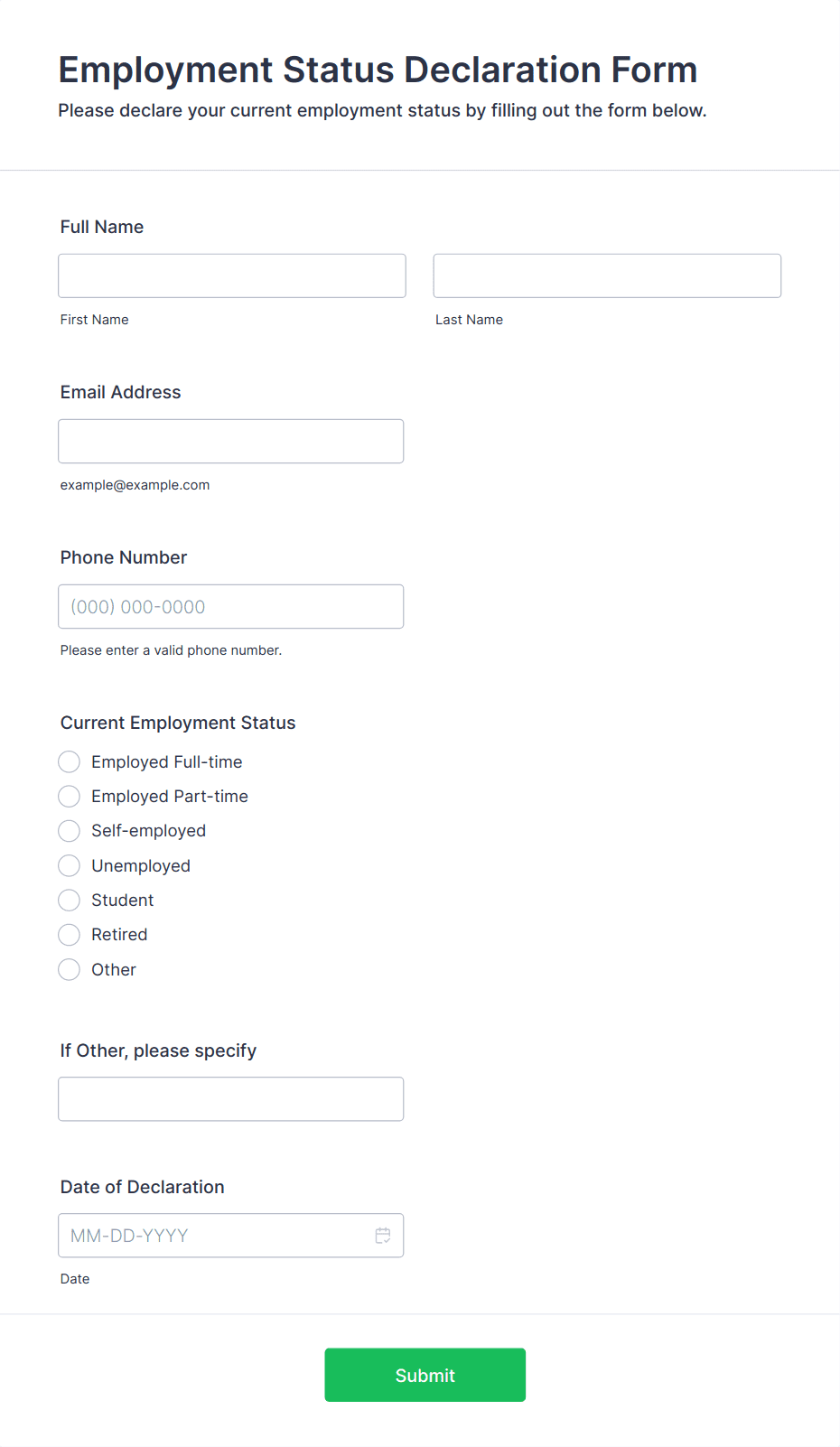 An employment form is a document used by organizations to collect, manage, and store information related to various HR processes, such as job applications, onboarding, performance reviews, and exit interviews.