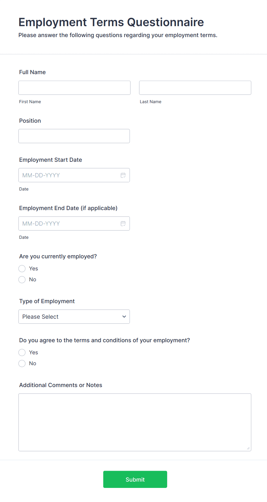 3. What information is typically included in employment forms?