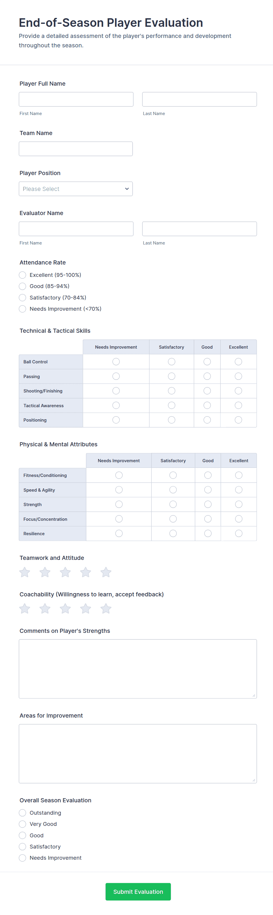Soccer Player Evaluation Form