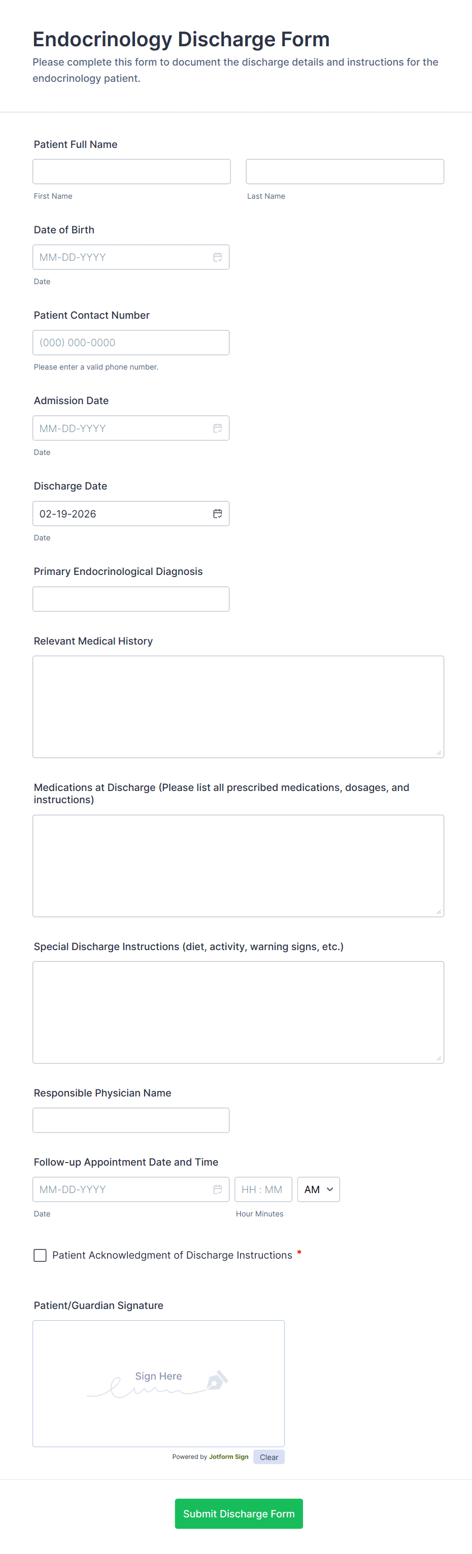 Patient Discharge Form