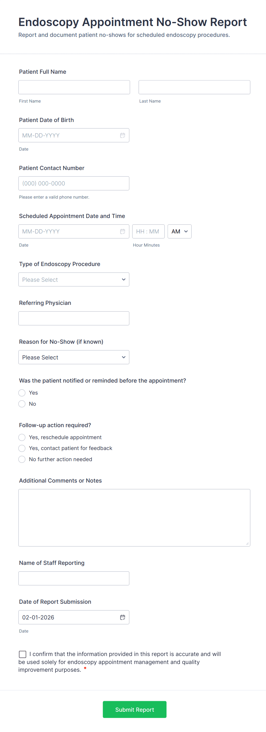 • For business reports: Include fields for dates, metrics, comments, and file uploads.