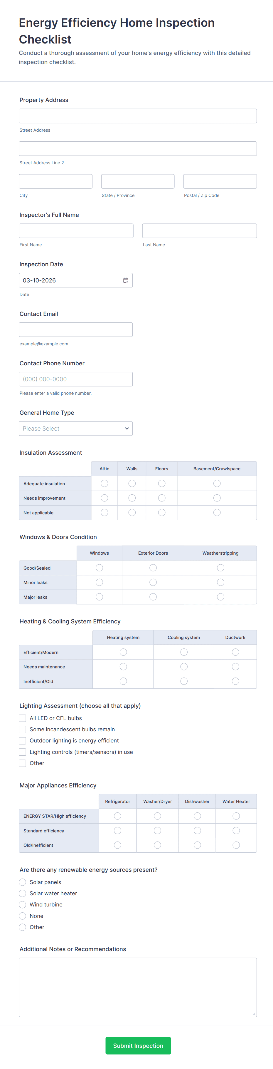 Home Inspection Form