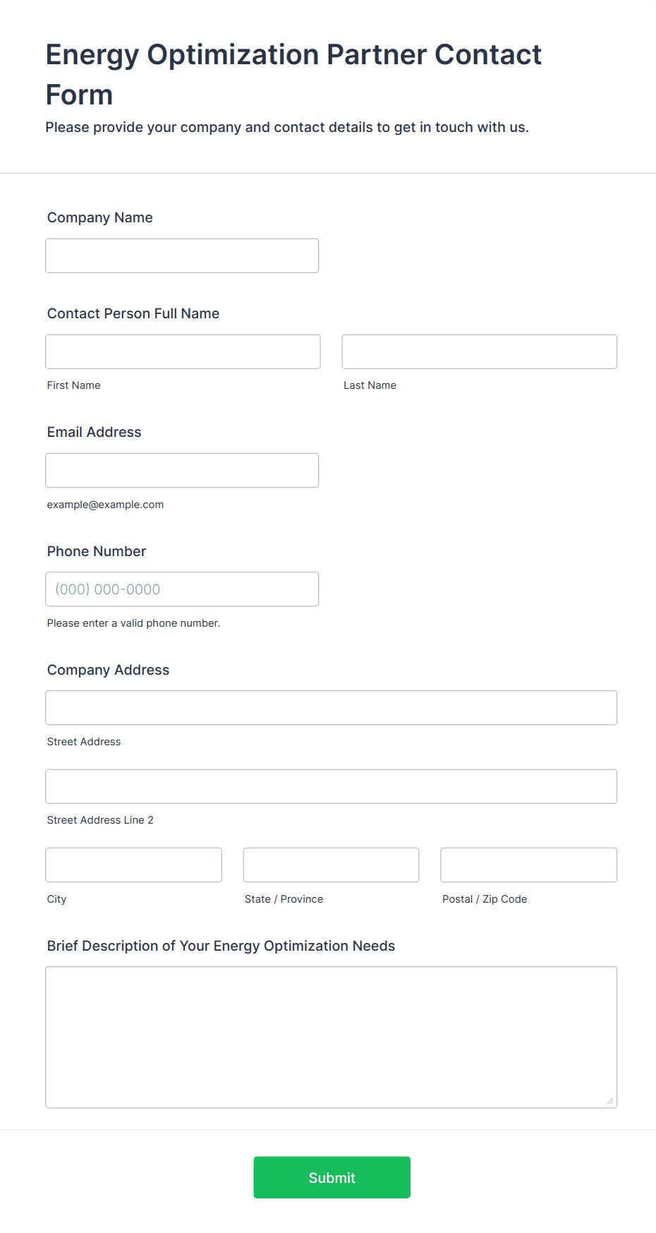 • Sales or quote request forms could ask for company details, budget, and specific service interests.