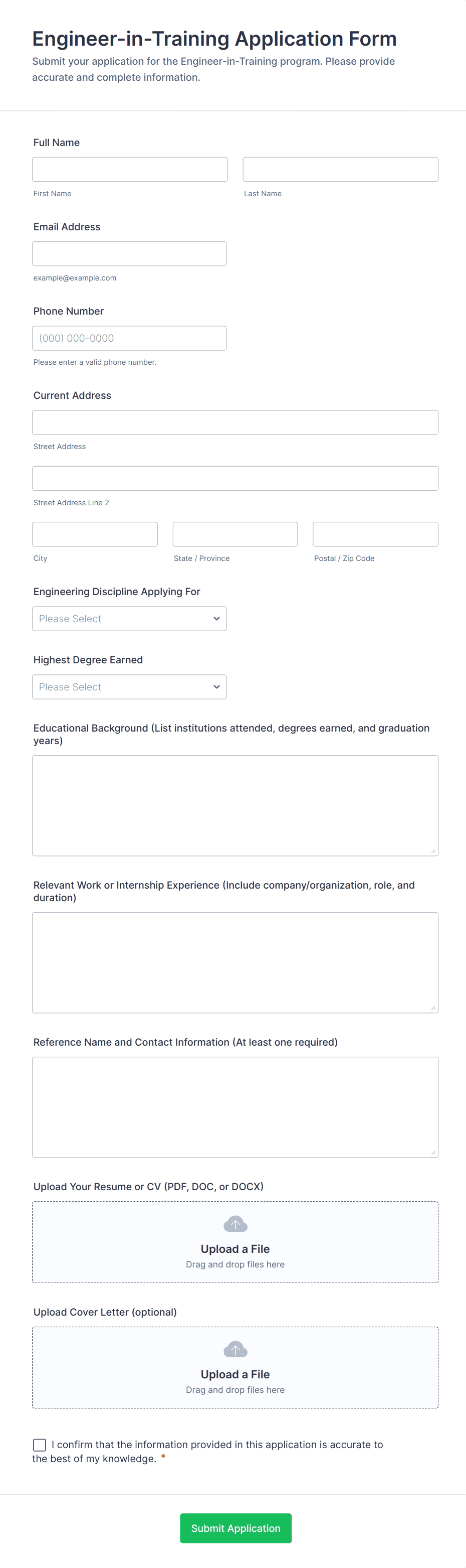 An engineer form is a digital document used by engineering professionals to collect, record, and manage project-related data such as inspections, maintenance, progress reports, and compliance checklists.