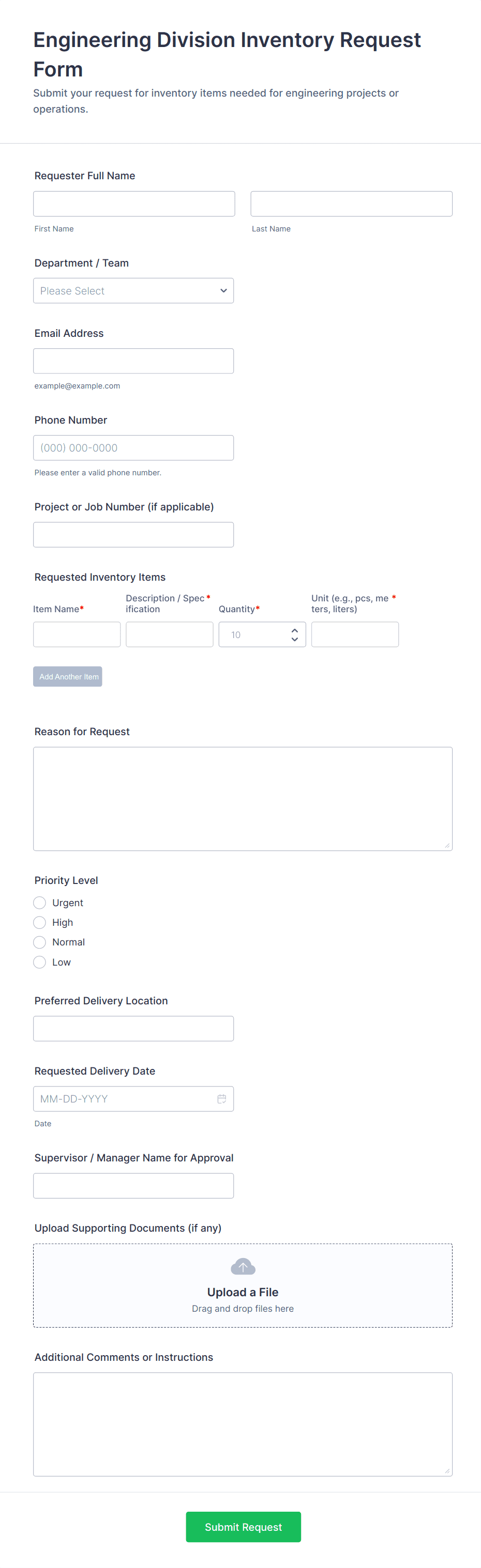 Collect requester name, role, department, and contact info so requests can be routed and fulfilled correctly.