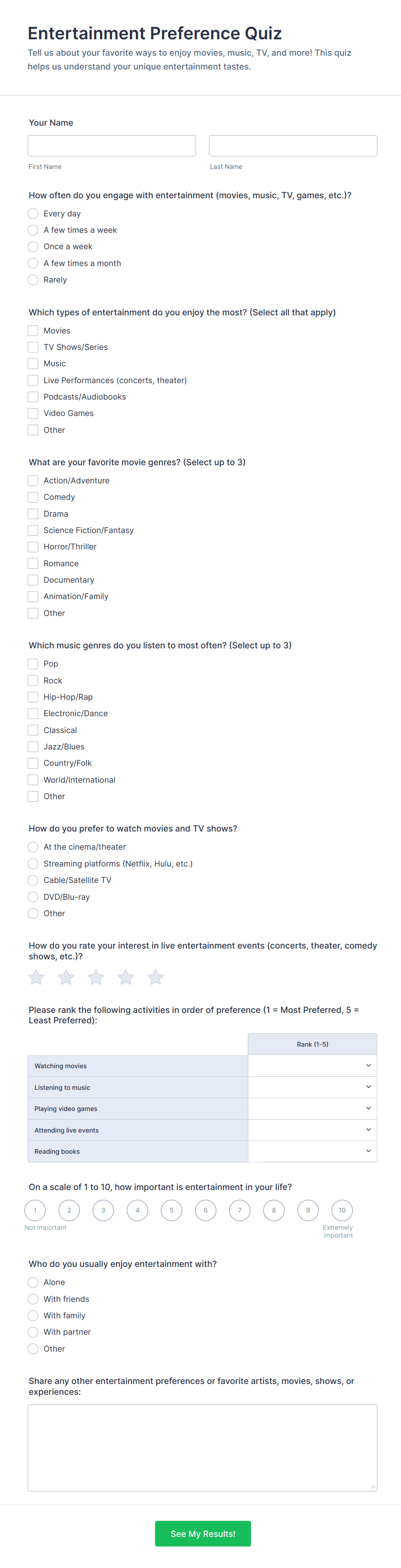 A Trivia Quiz Form is a versatile tool that can be adapted to various contexts and objectives, serving as a fun, interactive, and engaging way to entertain, educate, and connect with audiences.