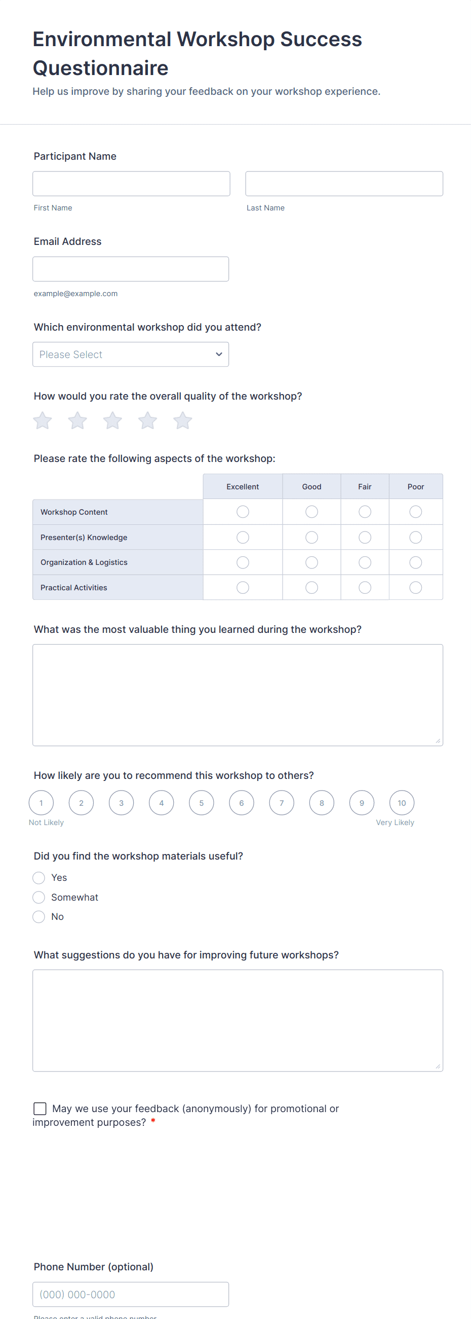 • Optional contact information fields if you wish to follow up with respondents