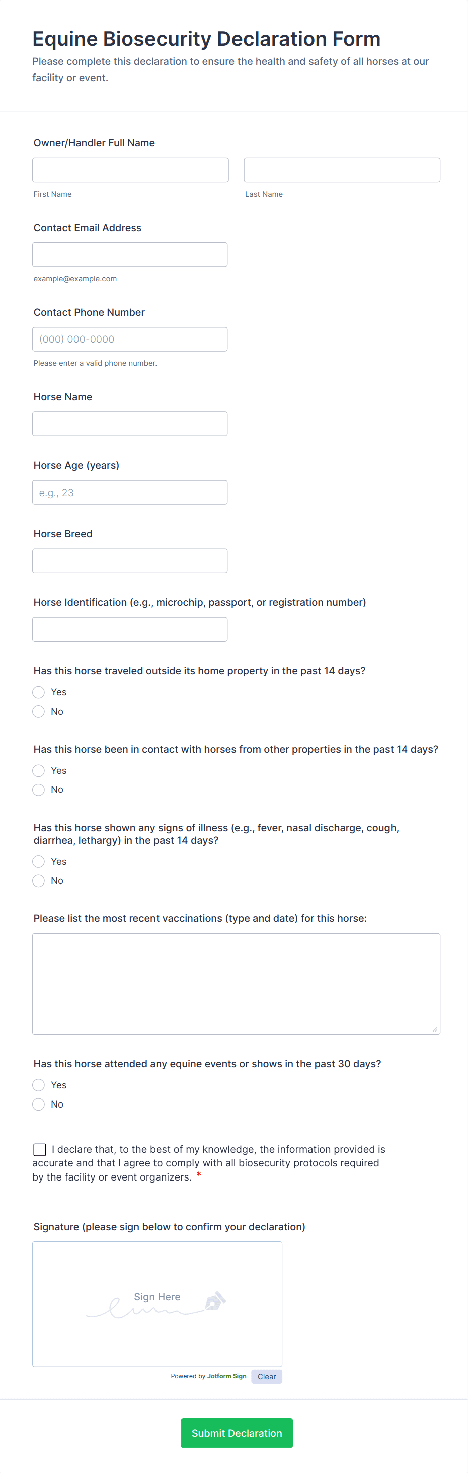 Creating a declaration form with Jotform is a straightforward process that allows you to collect official statements, consents, or disclosures efficiently. Whether you need a health declaration, legal acknowledgment, or parental consent, Jotform’s flexible platform ensures your form meets your exact requirements. Here’s a step-by-step guide to building a declaration form for any use case: