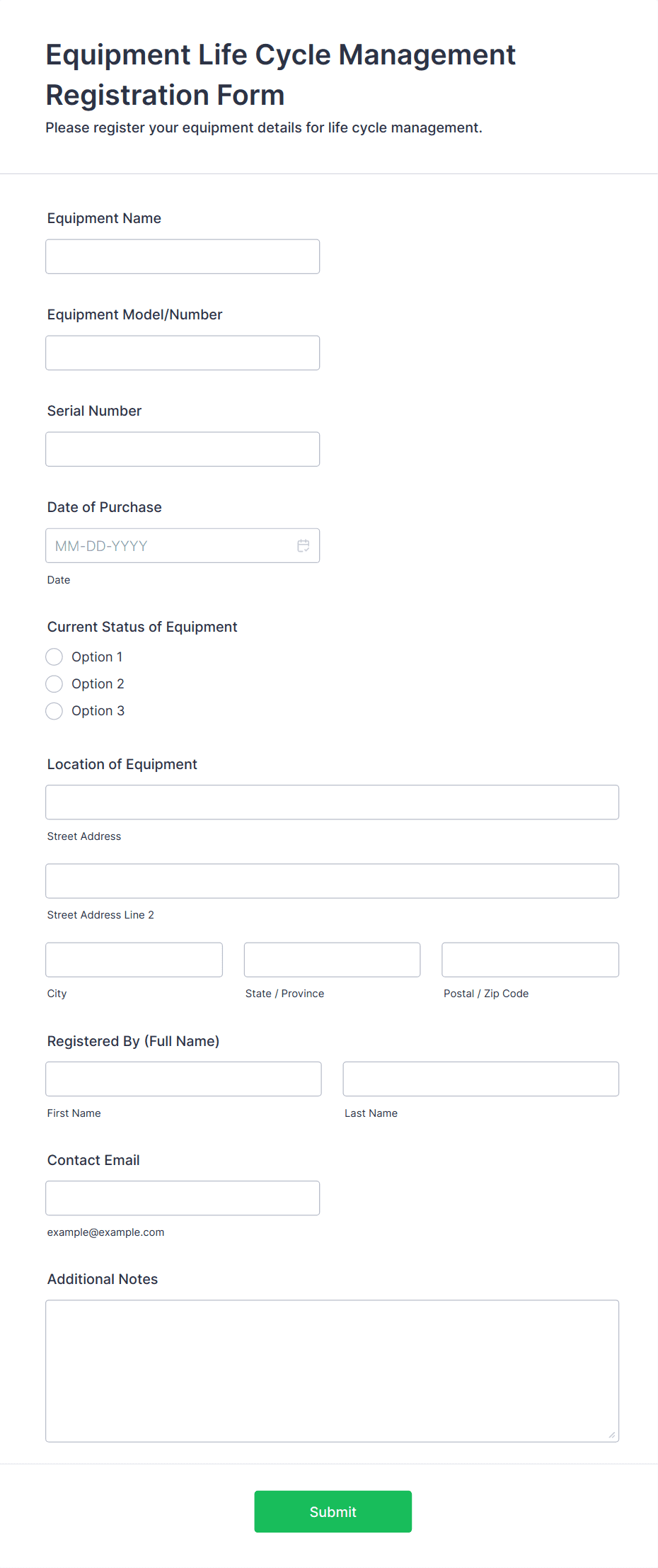 Equipment Inventory Form