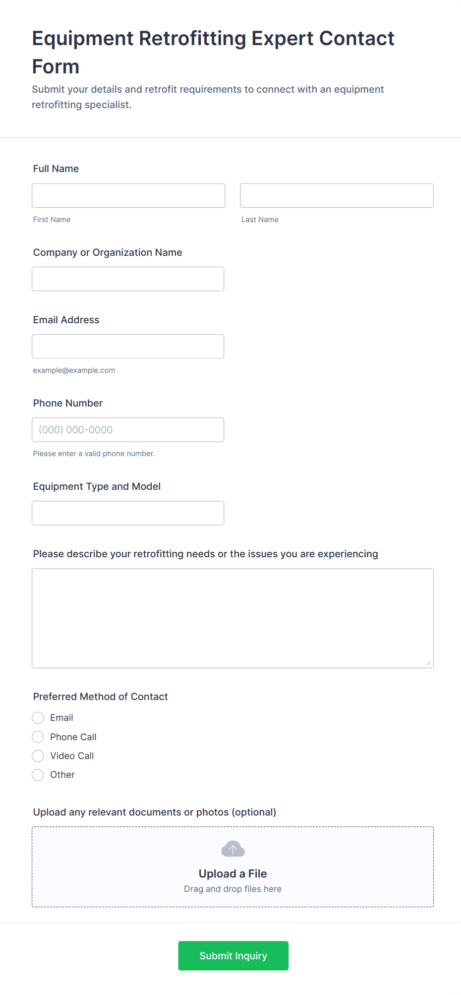 - For specialized use cases, include dropdowns (e.g., inquiry type), checkboxes (e.g., preferred contact method), or file upload fields (for attachments or screenshots).
