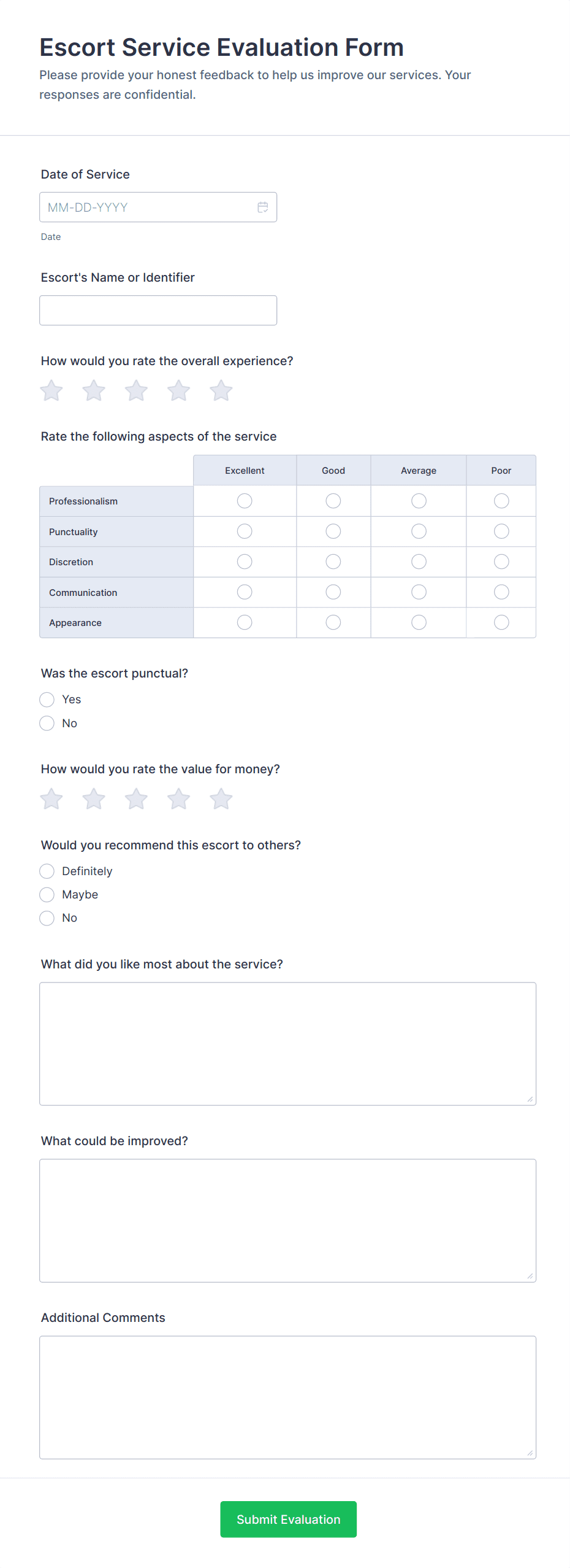 By following these steps, you can create a Service Evaluation Form that not only collects meaningful feedback but also streamlines your evaluation process, helping you deliver better services and foster continuous improvement.
