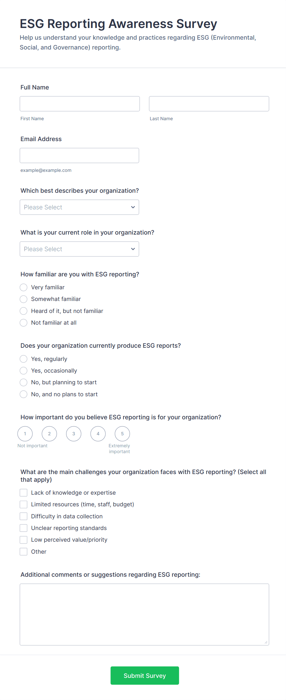 For employee surveys, consider adding anonymity options; for customer surveys, include contact fields if follow-up is needed.