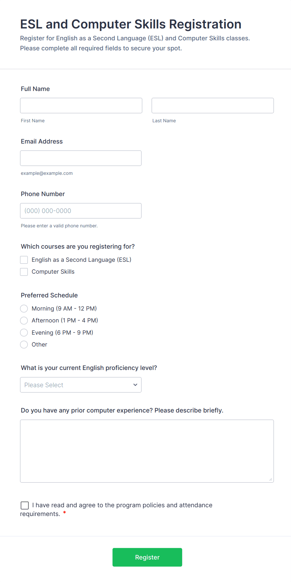 Computer Training Registration Form