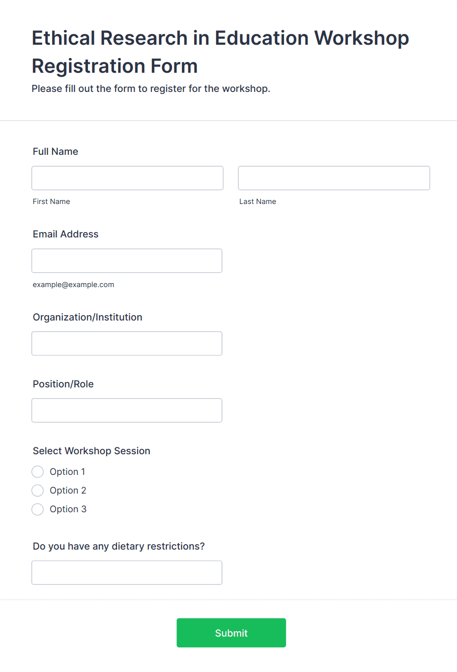 3. What information should be included in a workshop registration form?