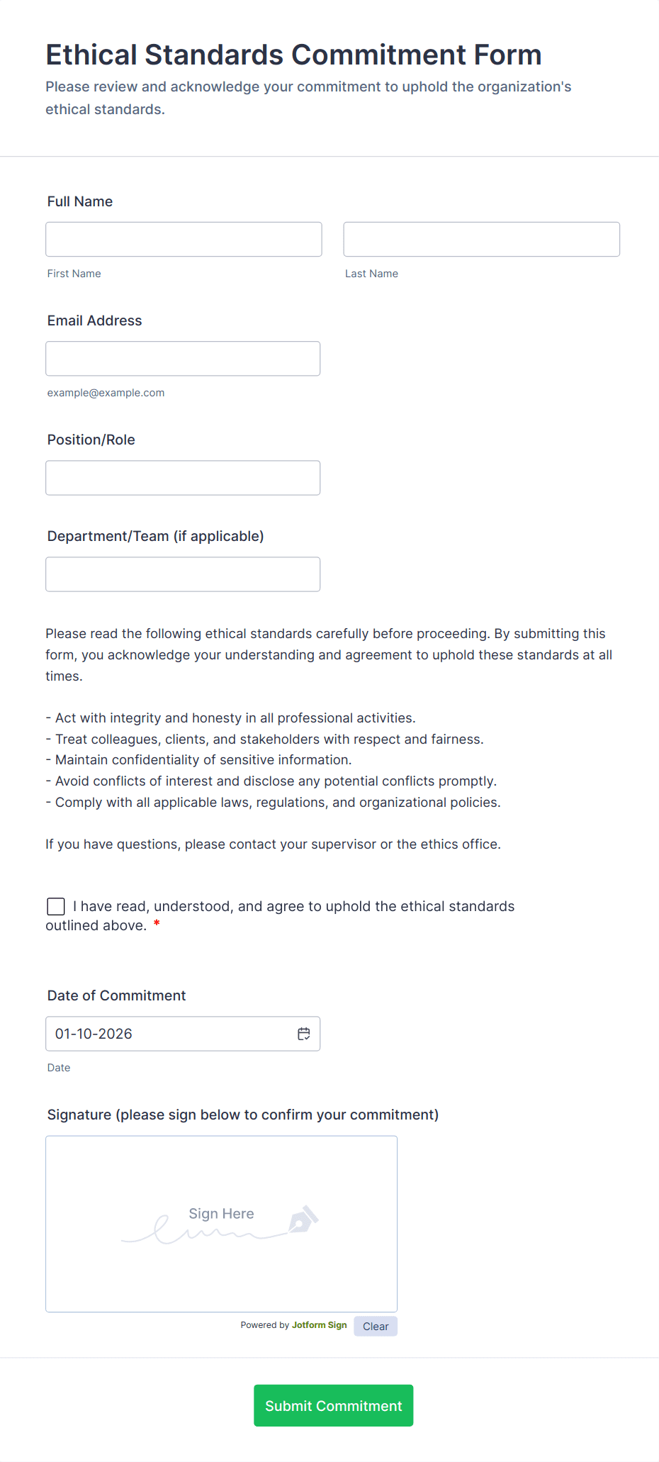 - Embed the form on your intranet or onboarding portal for easy access.