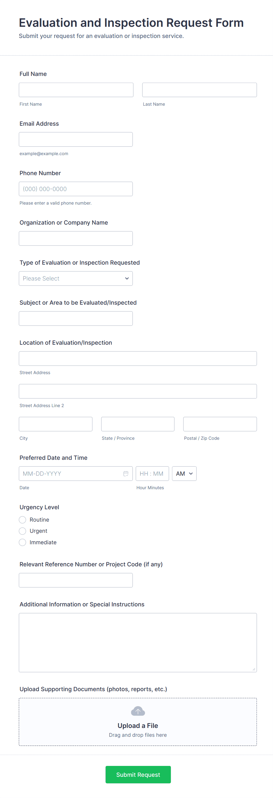 Inspection forms are specialized documents used to systematically evaluate, record, and report the condition, compliance, or quality of assets, environments, or processes. These forms are essential across a wide range of industries, including construction, manufacturing, real estate, hospitality, healthcare, and transportation. Common use cases include safety inspections, equipment checks, property walkthroughs, vehicle inspections, food safety audits, and facility maintenance reviews. By standardizing the inspection process, these forms help ensure that all necessary criteria are assessed, issues are documented, and corrective actions are tracked efficiently.