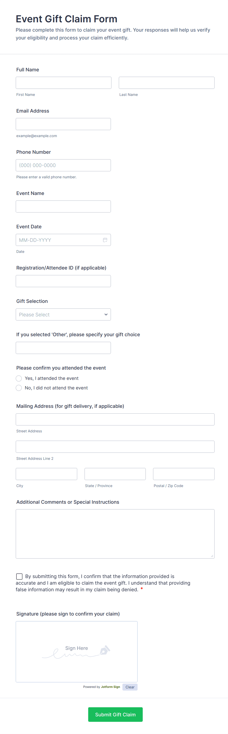 - Social Media Giveaways: May include fields for social handles, sharing proof, or referral tracking.
