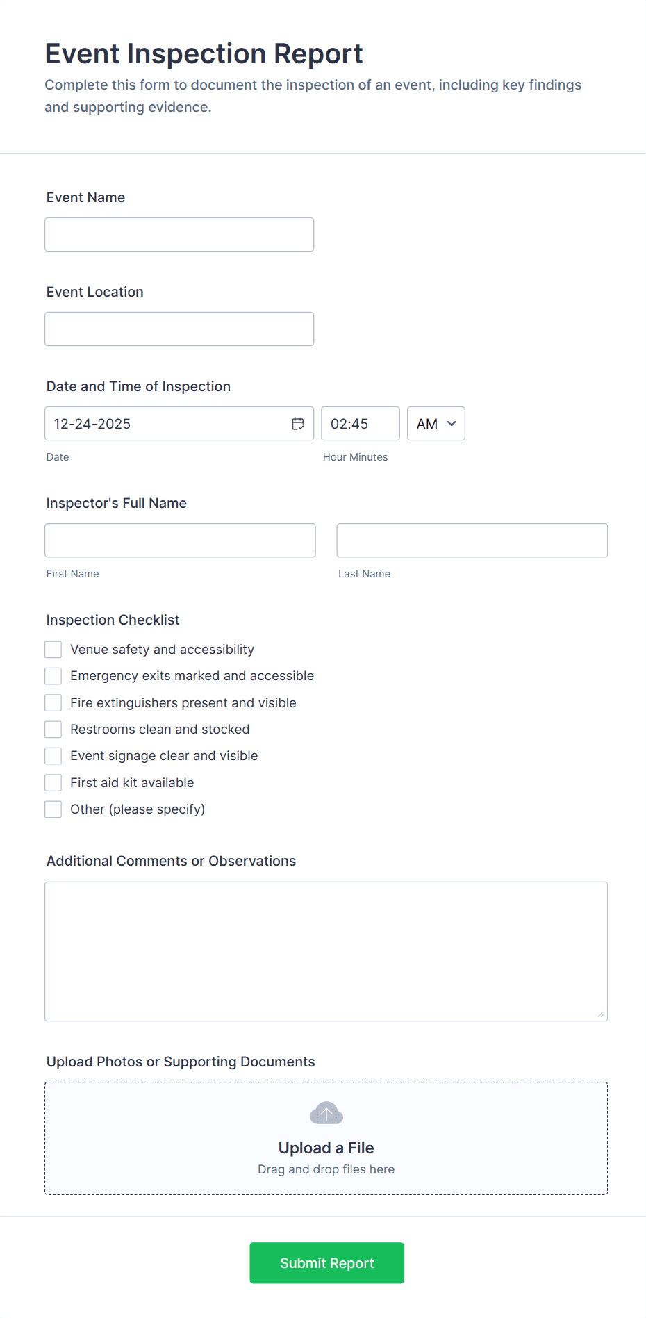 3. What information should be included in an event planner form?