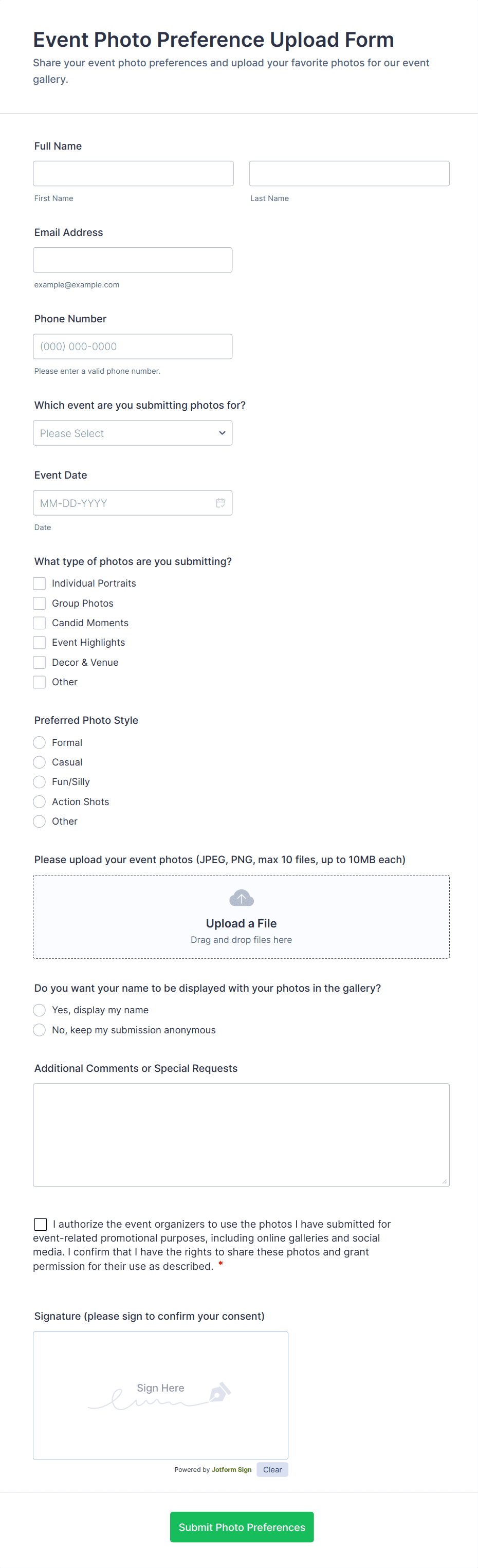 With Jotform, users can easily create and customize File Upload Forms to fit their specific needs, thanks to its intuitive drag-and-drop Form Builder and a wide range of ready-to-use templates. Jotform’s platform allows you to add file upload fields, set file type and size restrictions, and integrate with cloud storage services for seamless file management. Submissions are automatically organized in Jotform Tables, making it simple to review, download, and manage uploaded files. Whether you’re collecting assignments, contracts, or creative assets, Jotform streamlines the process, ensuring data security and efficient workflow integration.