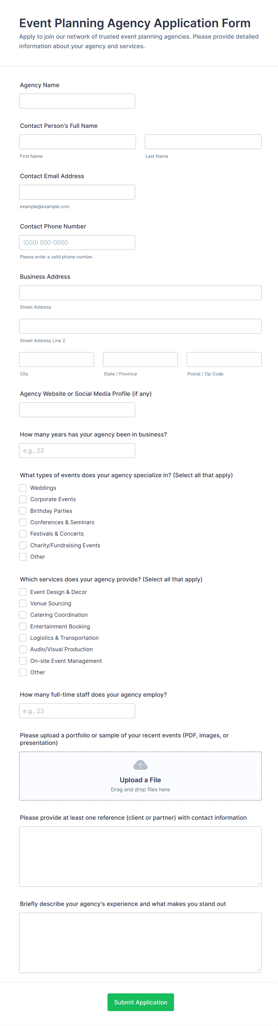 - Event Vendor Registration: For event organizers managing food, merchandise, or service vendors at fairs, expos, or festivals.
