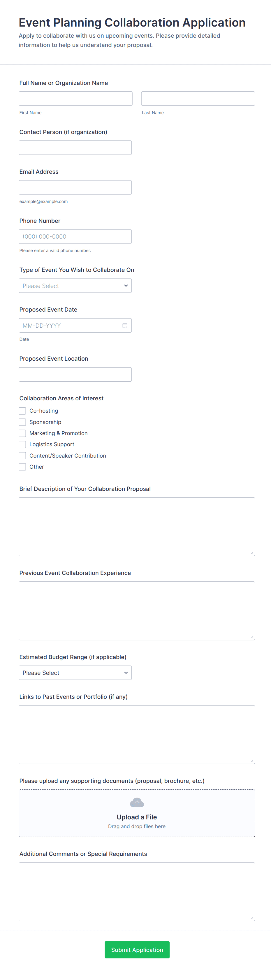 An event planner form is a digital tool used to collect, organize, and manage information related to event planning, such as guest registrations, vendor details, feedback, and more.