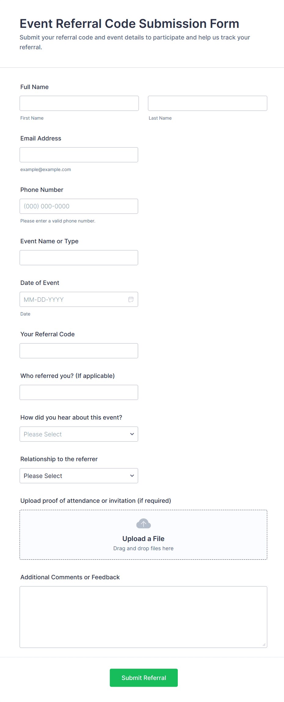 • For healthcare or sensitive referrals, include fields for privacy agreements or HIPAA compliance.