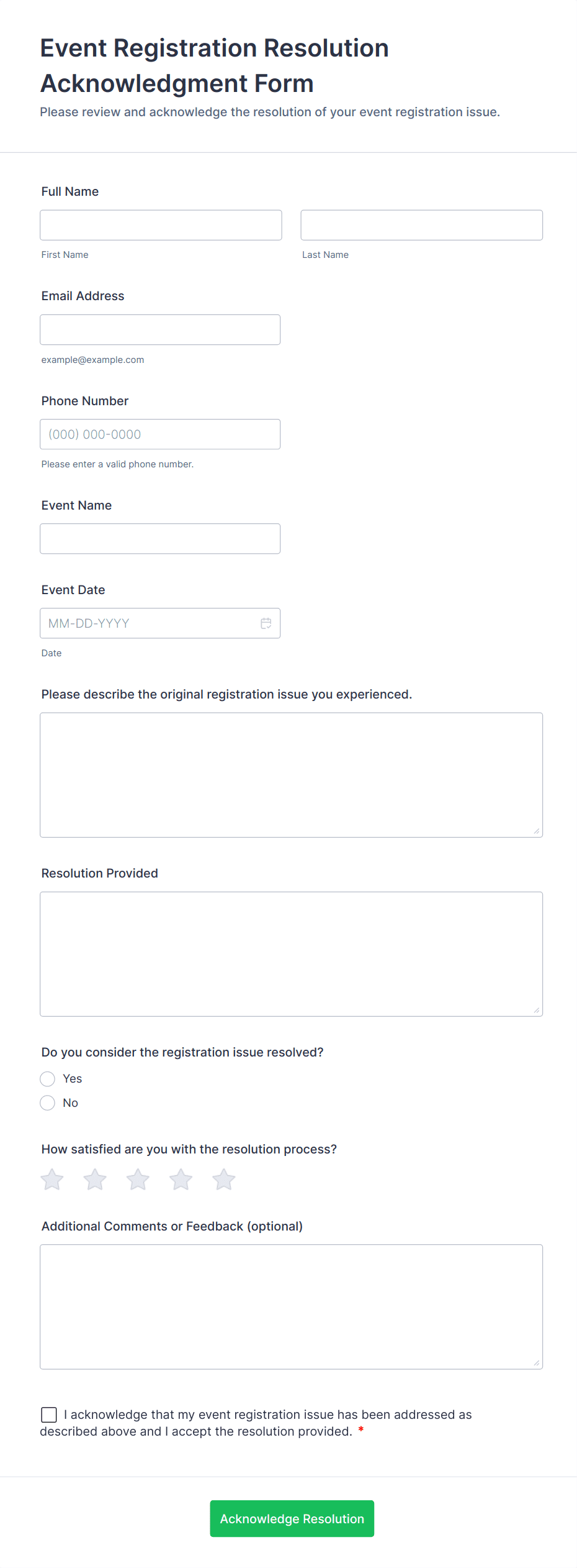 - Distribute the form via email, social media, or embed it on your event website.