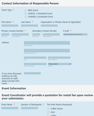 • Some forms may require additional fields for accessibility needs, travel arrangements, or merchandise pre-orders.