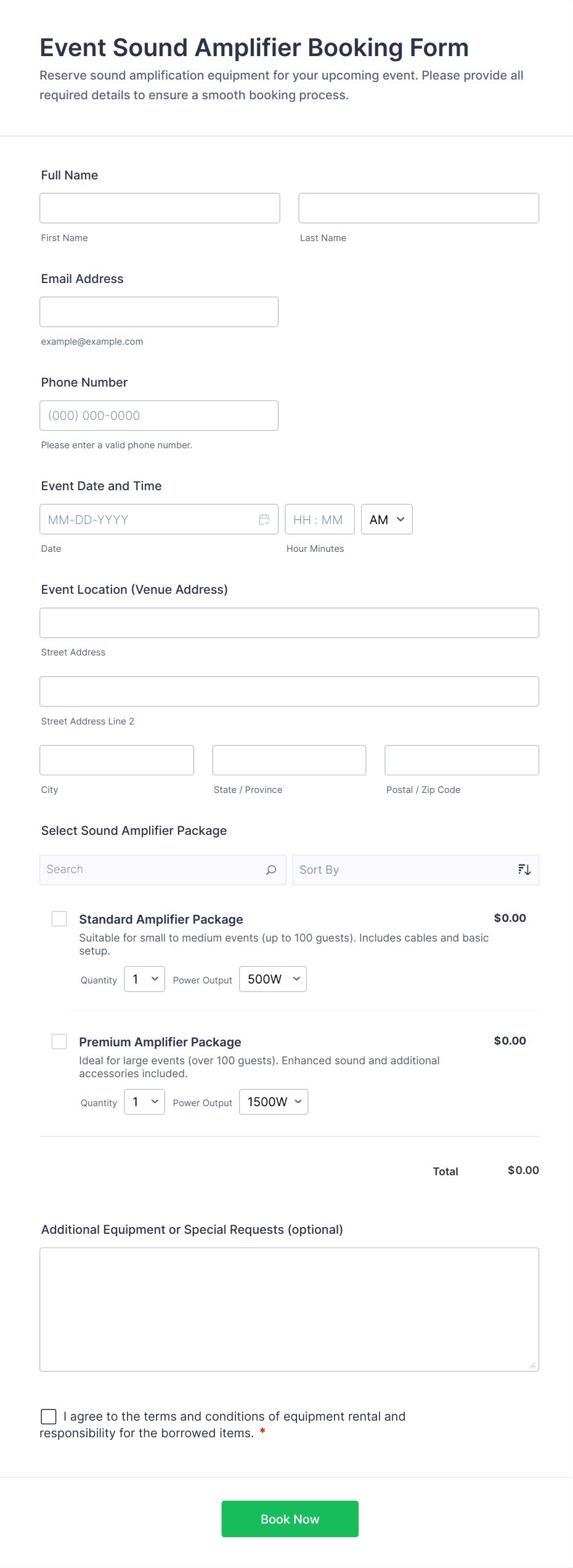 • Content and Fields: A concert booking form may require seat selection and payment integration, while a workshop sign-up might focus on participant details and session preferences. Private event RSVPs may include meal choices or guest information, whereas facility reservations could need date/time selectors and equipment checklists.