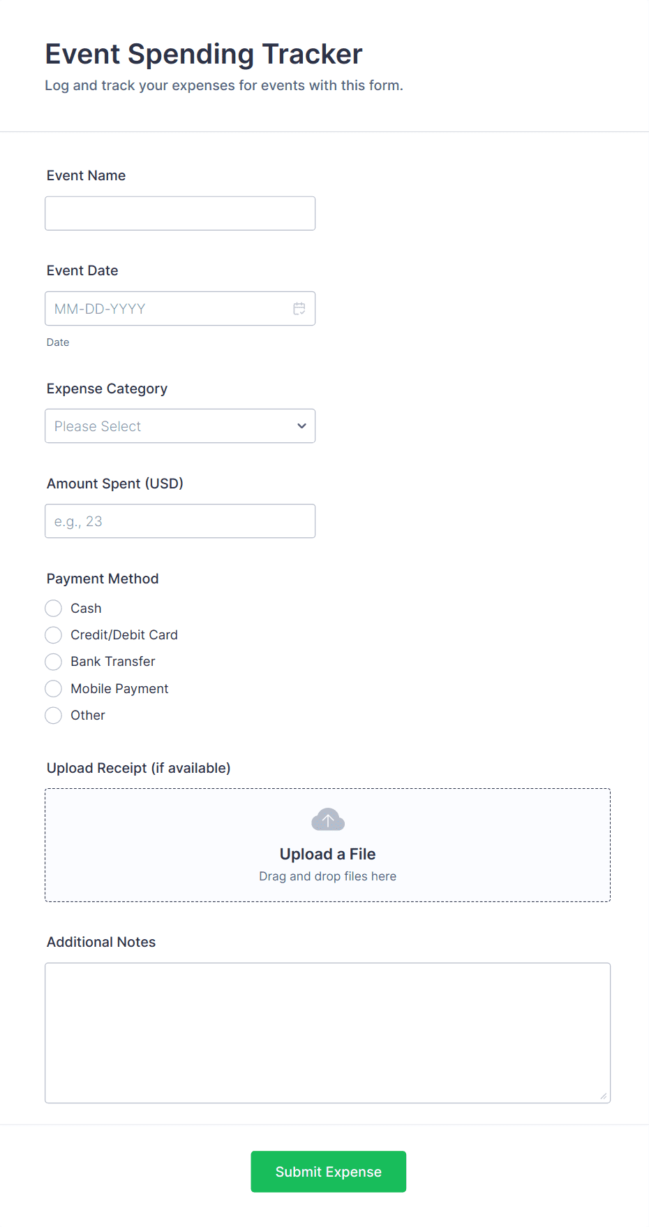 By following these steps, you can create a tailored Expense Tracking Form that streamlines data collection, improves accuracy, and enhances financial oversight for any scenario.