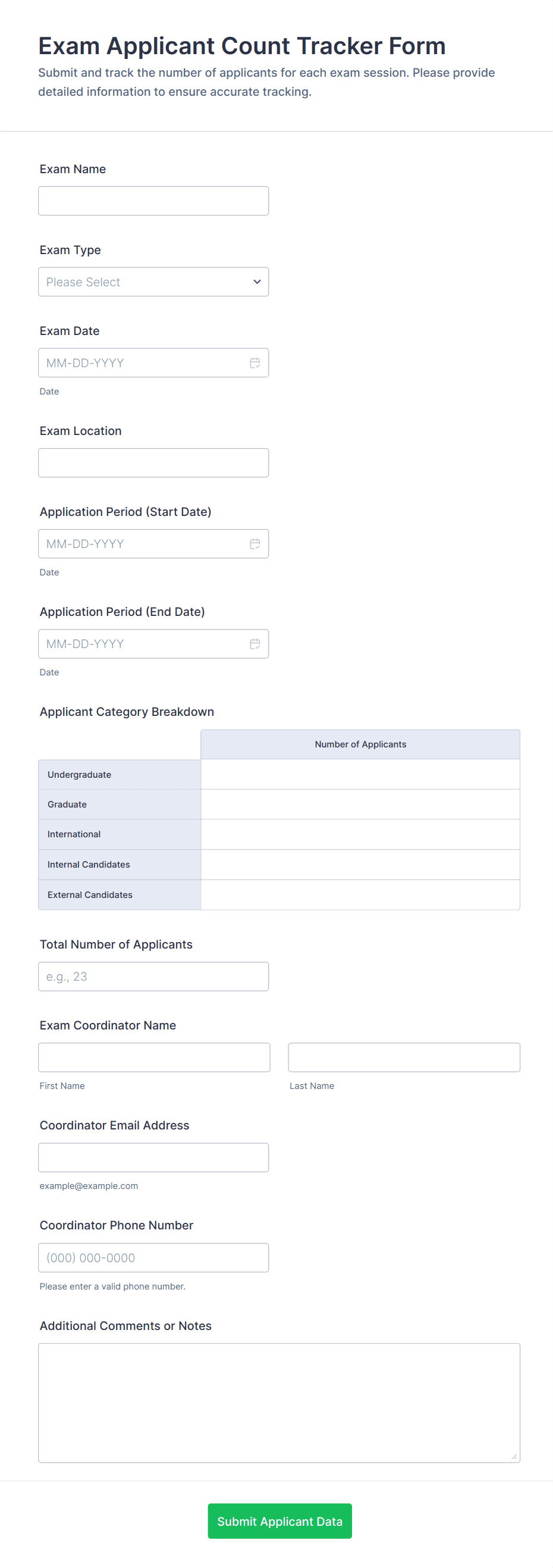 Exam Registration Form