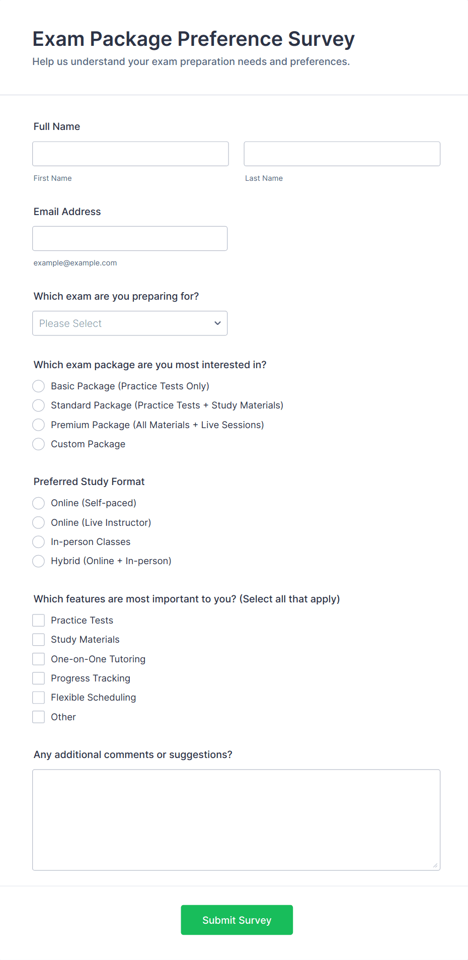 3. What information is typically collected in an exam form?