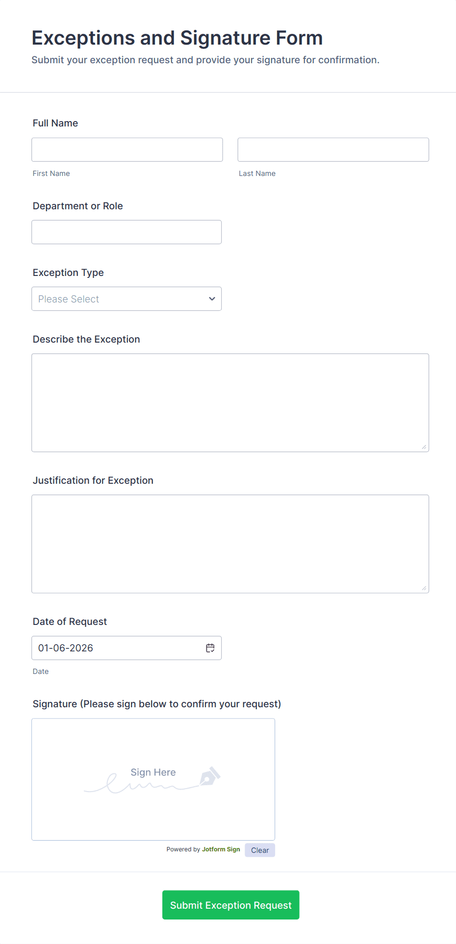 Request forms are essential tools for gathering and organizing information when someone needs to ask for something — whether it’s a service, resource, approval, or support. These forms streamline the process of submitting and managing requests in a wide range of scenarios, such as equipment requests, maintenance requests, time-off requests, IT support, purchase orders, facility bookings, and more. By providing a standardized way to collect all necessary details, request forms help organizations ensure that every request is clear, trackable, and actionable, reducing miscommunication and delays.
